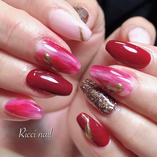 ニュアンス ピンク 赤のネイルデザイン ネイルブック